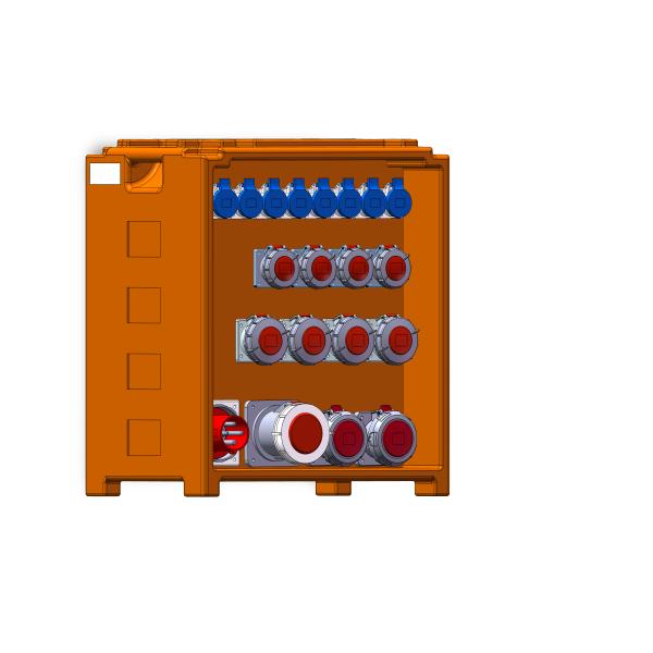 | BOX type: DT-box-XL Color: Orange Input line: 1 5P125A IEC device plug IP67 input line control: use 1 4P125A small circuit breaker control Output: 1 5P125A IEC socket IP67 is controlled by 1 4P125A mini-circuit breaker 2 5P63A IEC sockets IP67 are controlled by 2 4P63A small leakage circuit breakers 4 5P32A IEC sockets IP67 are controlled with 4 3P32A small leakage circuit breakers 4 5P16A IEC sockets IP67 are controlled with 4 3P16A small leakage circuit breakers 9 3P16A IEC sockets IP67 are controlled with 9 1P16A small leakage circuit breakers Display function: grounding core Product size: 600x400x700mm |
